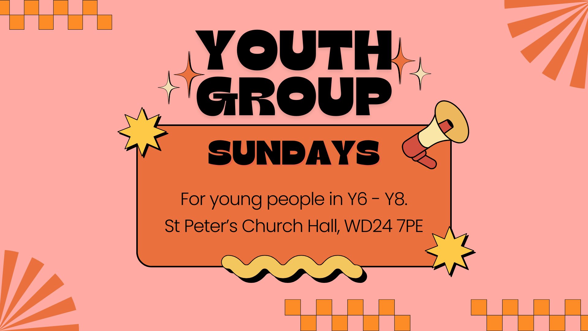 Youth at St Peter's runs in the church hall on Sundays, at The Four for young people in Y6-Y8. Contact Esther at cyfpastor@stpeterswatford.org.uk for more information.